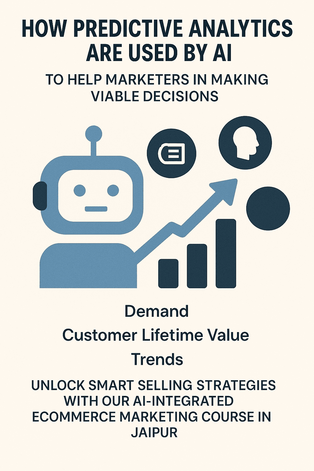 This is how predictive analytics are used by AI to help marketers in making viable decisions. E-commerce touts indications of what forecasts were made on demand, customer lifetime value, and trends well in advance before they become mainstream. This gives marketers the ability to time their campaign launches, know when to stock up on great-selling products, and develop offers directed toward specific customer segments.Unlock smart selling strategies with our AI-integrated eCommerce marketing course in Jaipur.