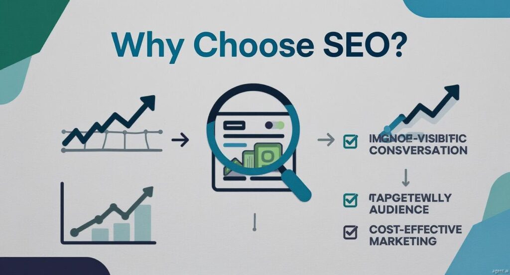 • SEO brings you long-term visibility online.
